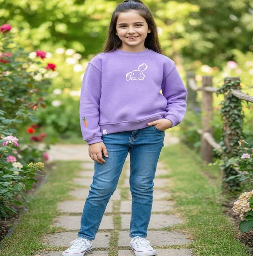 بلوز دخترانه یقه سه سانت طرح خرگوش، جنس پارچه سلانیک بسیار با کیفیت و تمام پنبهسایزبندی: